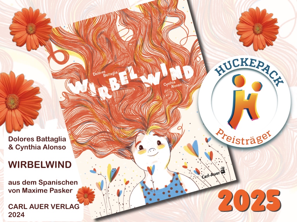 Zum zehnten Mal wurde am 12. Mai 2025 in Wetzlar der mit 1000,- € dotierte HUCKEPACK Bilderbuchpreis vergeben. Er ging in großer Runde im Rahmen eines pädagogischen Fachtags zur Bedeutung des Erzählens im Leben von Kindern an die argentinischen Künstlerinnen Cynthia Alonso und Dolores Battaglia, deren erstes Bilderbuch »Wirbelwind« (Carl Auer Verlag Heidelberg) die Jury zu einem einstimmigen Wahlergebnis brachte.