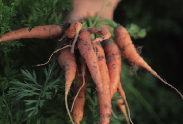 Lea und Rasmuss stehen nah beieinander im Außenbereich und staunen über etwas Oranges unter und zwischen den großen und dicht wachsenden Blättern im Gemüsebeet. Die Aufregung ist groß, denn im Frühling haben wir genau hier eine geschenkte Jungpflanze von Malins Eltern eingepflanzt. Weitere Kinder kommen hinzu, darunter auch Malin. Sie staunen nicht schlecht, als Lea mutig die Blätter hochhebt, um genauer zu schauen. Da sind tatsächlich mehrere Hokkaidokürbisse gewachsen. Für einen Moment weicht die Aufregungen einem stillen Staunen über das unverhoffte Kürbiswunder. Ein Moment, in dem es mir so vorkommt, als würden in unserem Garten nicht nur Kürbisse, sondern auch Kinder wachsen. Durch leichtes Klopfen auf die Schale finden wir heraus, dass zwei Kürbisse reif sind. Sie hören sich dumpf und hohl an. Dabei haben die Kinder bemerkt, dass der Stil vom Kürbis dick ist, ziemlich piekst und viel zu groß ist, um ihn wie eine Tomate vom Strauch zu pflücken oder zu ziehen. Mit einer Schere, die ich aus dem Gartenhäuschen hole, gelingt uns die Ernte, und nachdem die Kürbisse durch mehrere Hände gewandert sind, tragen Rasmuss und Lea sie in unseren Gruppenraum. Ein Teil der Kinder begleitet uns nach Drinnen, andere ziehen mit einer Schnecke, die sie während der Ernte unter einem Blatt gefunden haben, weiter durch den Garten.